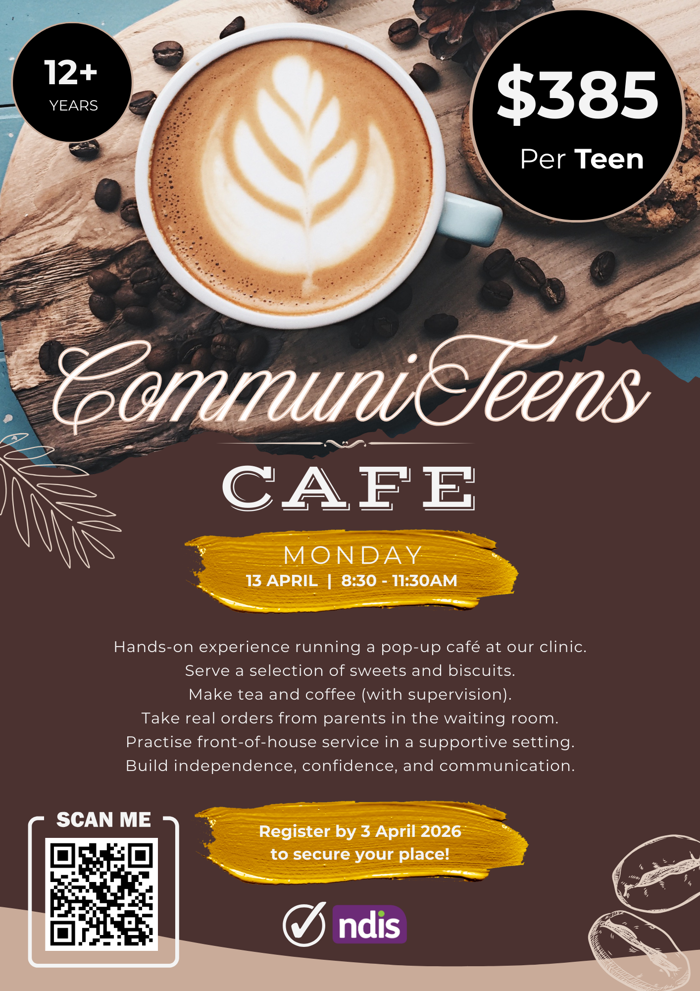 Join us on Monday, 13 April 2026, from 8:30am to 11:30am for our CommuniTeens Café, a special edition of our popular teen program. While our regular CommuniTeens sessions pause during the holidays, this event is designed to keep teens connected and engaged in a fun, real-world learning environment.