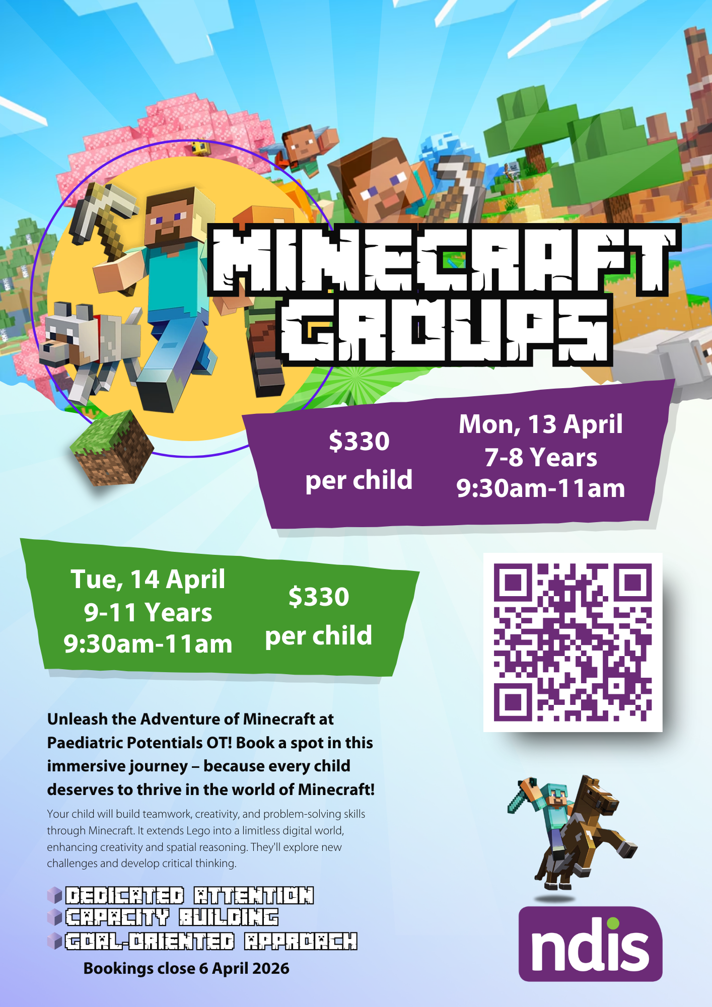 That’s why we’re releasing our April groups ahead of time — so families have the opportunity to plan, organise supports, and secure their preferred session without last-minute pressure.